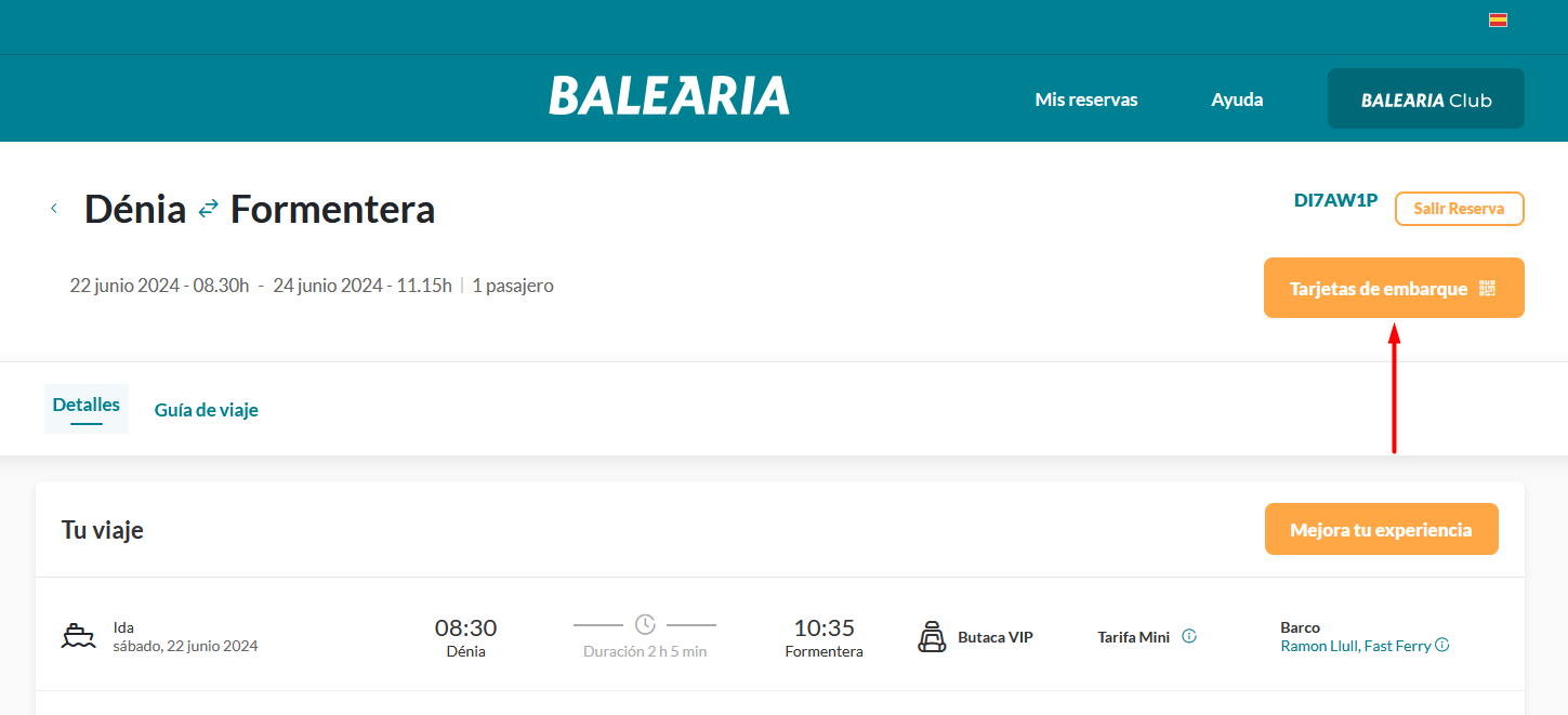 3. Un cop dins, ves a l'apartat de Targetes d'Embarcament, que trobaràs a la part superior dreta de la pàgina.