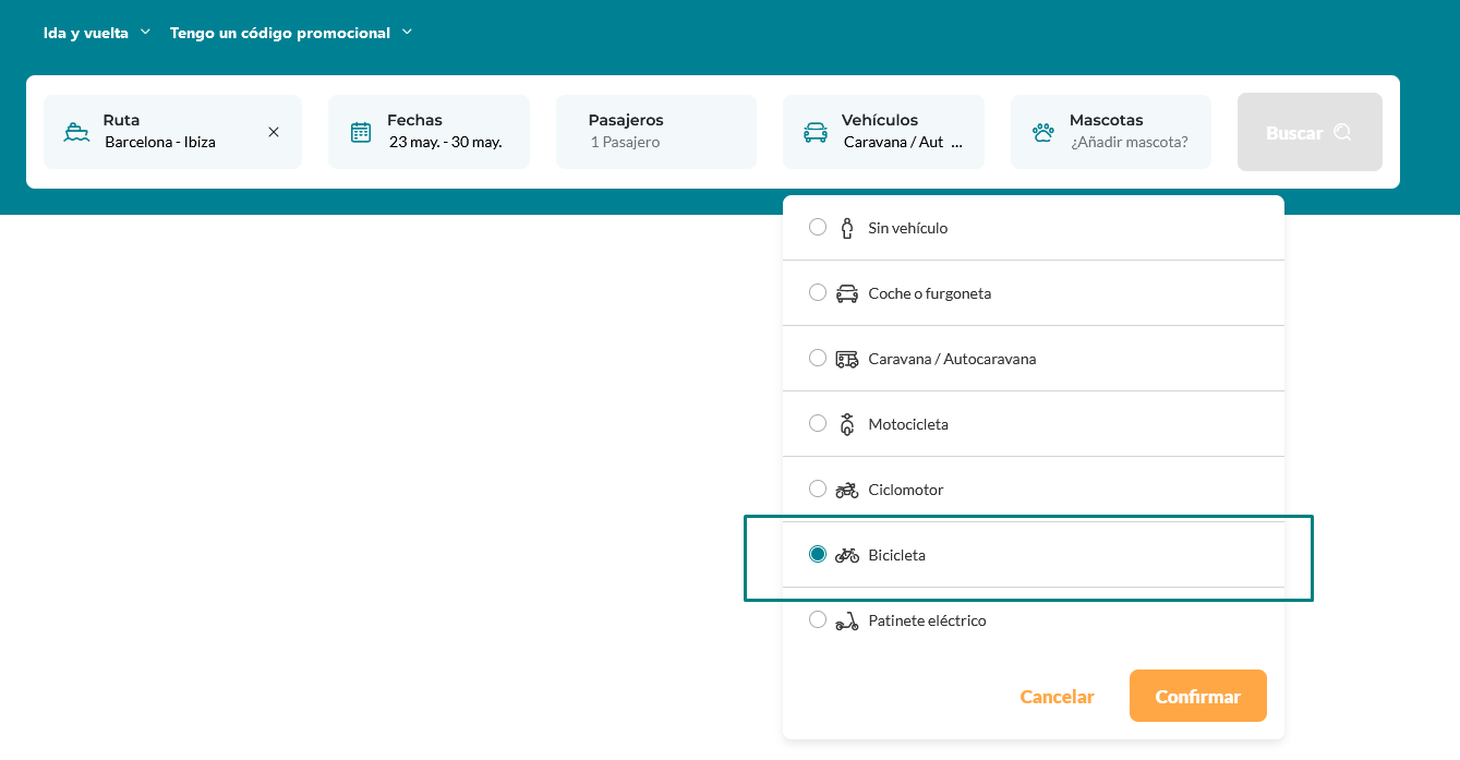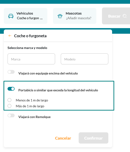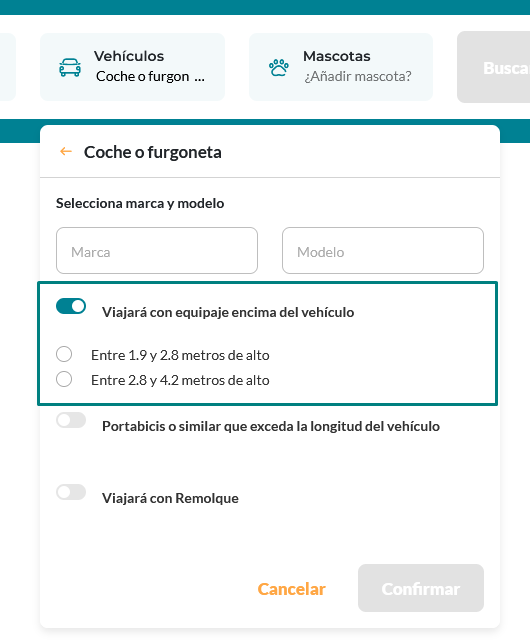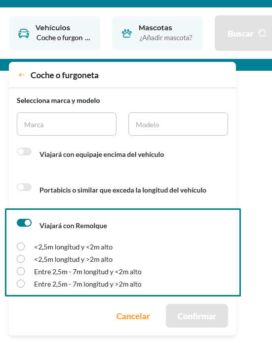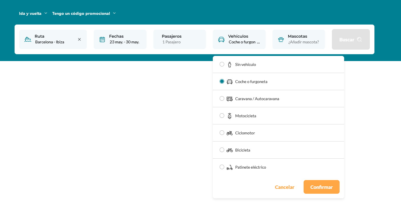 1. Choose the type of vehicle you are traveling in (car or van, or caravan / motorhome) and press confirm.