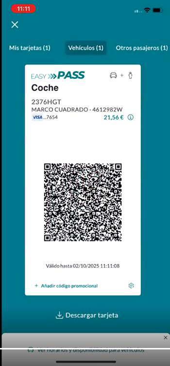 - Método de pago e importe del trayecto del vehículo y el pasajero. NO HAY QUE PASAR QR PARA EL PASAJERO CONDUCTOR, SOLO PARA LOS ACOMPAÑANTES EN CASO DE EXISTIR
