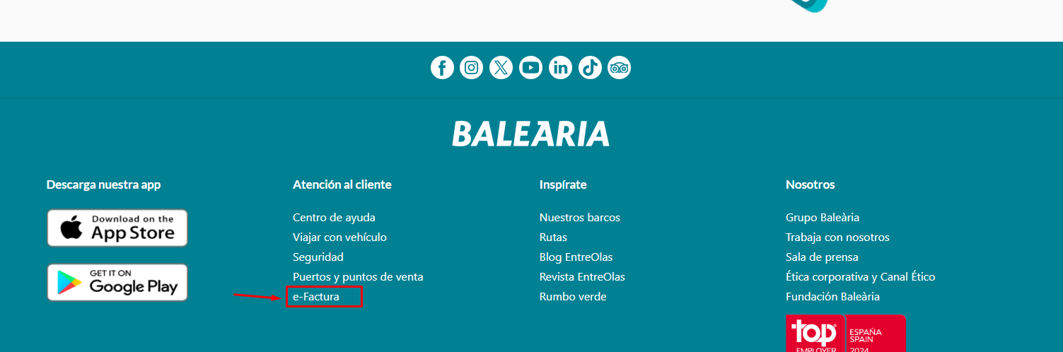 Si vous avez besoin d'une facture électronique après votre voyage avec Baleària, le processus est simple et rapide. Voici les étapes à suivre :